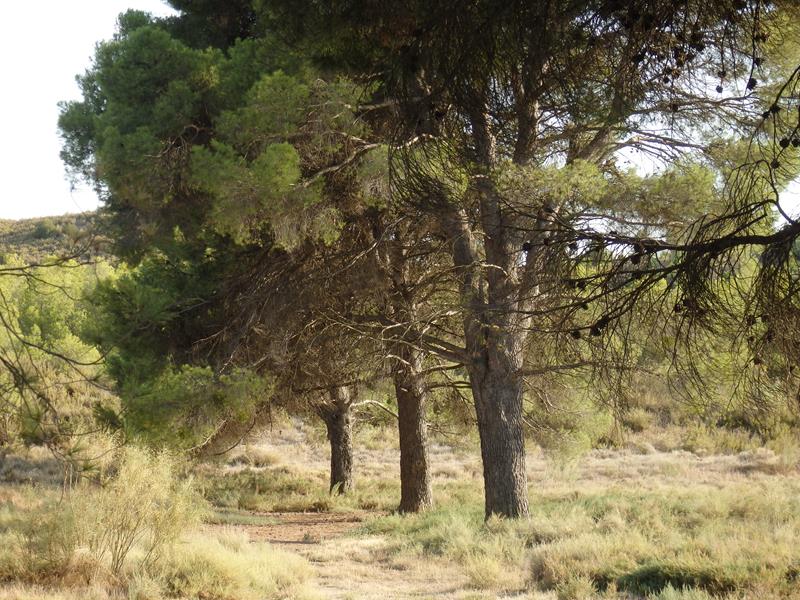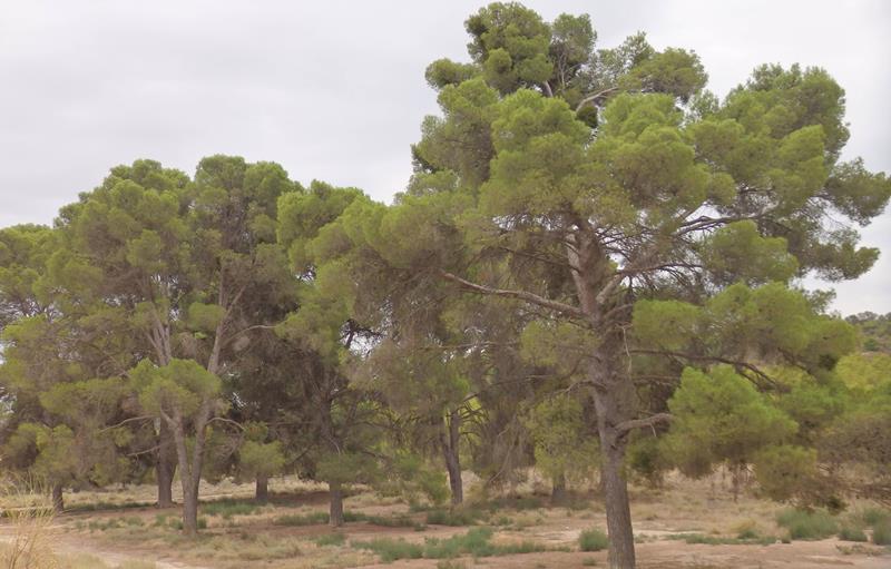 El rey del vedado es el pino carrasco (Pinus halepensis). Es muy resistente al calor y a la sequía. Es capaz de colonizar suelos muy pobres, esqueléticos, pedregosos o con costras calcáreas, incluso yesíferos y con gran contenido en sales. La madera de este pino no servía para la construcción, pero sí se quemaba para carbón de pino y sus ramas y resina se cocían en hornos para fabricar pez.