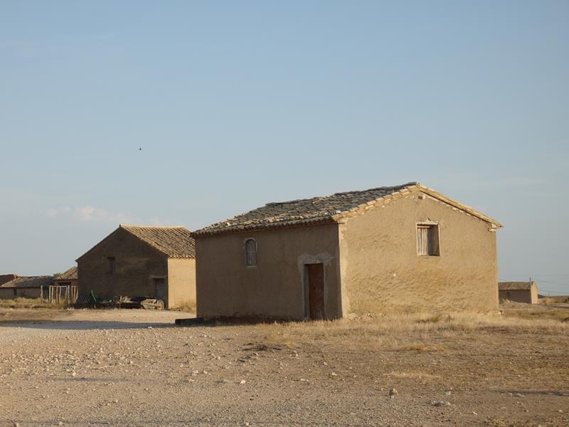 Ahora que estoy volviendo os puedo decir que no he visto a nadie. Son las 19:35 horas. Una vez llego al desvío hacia la ermita continúo recto hacia Peñaflor. Veo a lo lejos la torre de la iglesia de Nuestra Señora de los Ángeles. Dejo atrás el campo de fútbol. A mi izquierda unas casas agrícolas.Más simples no pueden ser, el color de las paredes y el tejado parecen una prolongación del propio suelo.