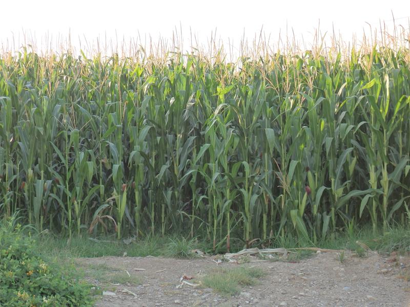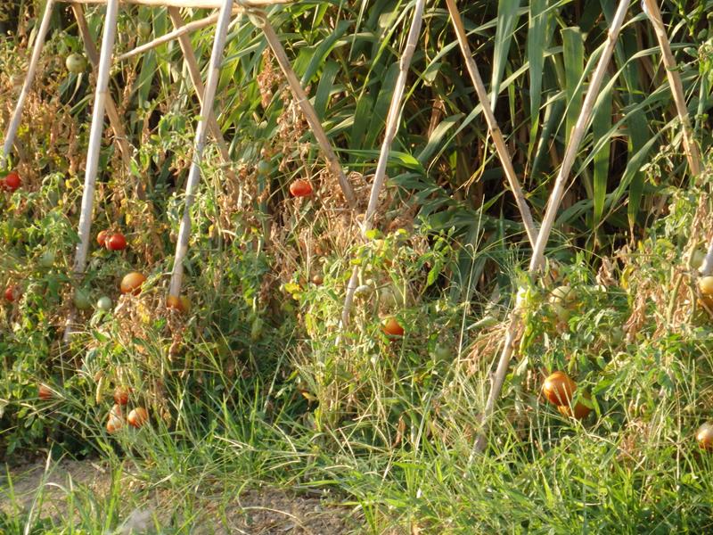 Después una casa y a su lado un inmenso campo de maíz. Las pinochas aún están por recoger. A continuación una huerta, donde tienen unos estupendos tomates que seguro saben muy bien.