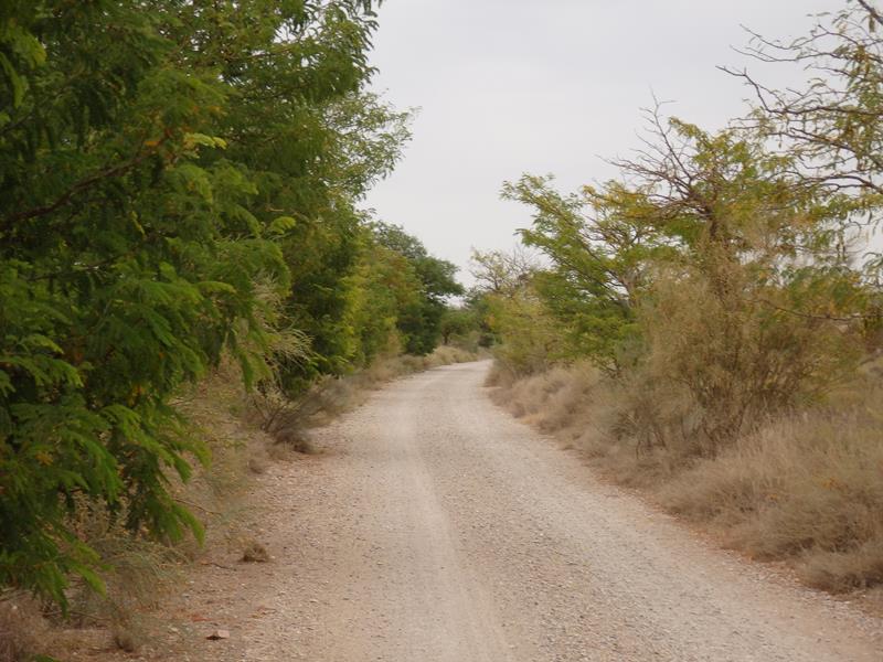 Paso al lado de Agua Salada, dónde la barbacoa inutilizada número dos. Camino entre la vegetación.