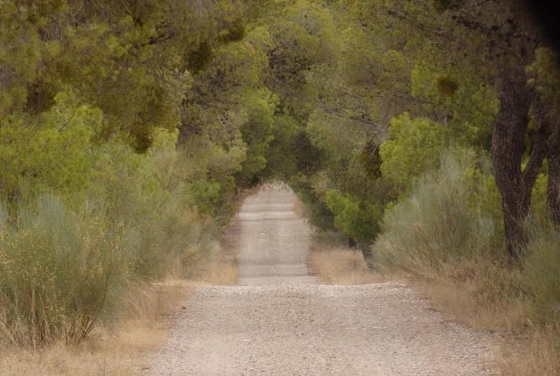 Peñaflor ya queda lejos. No hay núcleos urbanos cercanos. No se oye nada. Te quedas parado y es ausencia total de sonidos. Esto aún acrecienta más la sensación de soledad. A mí, sin embargo,no me da reparo, al contrario, para mí estos momentos no tienen precio, me siento realmente unido a la naturaleza. Ya veo la torre más cerca. Los pinos a veces, crean la sensación óptica de un túnel verde en la lejanía.