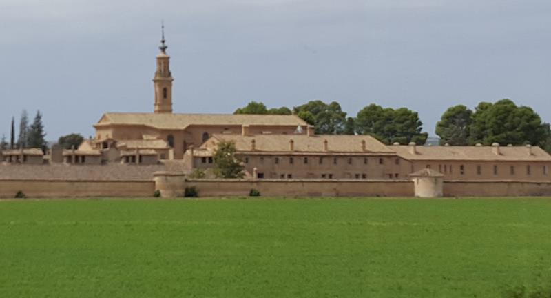 Pasado un rato, ya las casas desaparecen y son todo campos. Me acerco a una zona que se llama el Campus del Aula Dei. Poco después, a mi izquierda aparece la Cartuja del Aula Dei, un maravilloso lugar que visité y que también podéis conocer en la entrada del blog titulada: «Visita a la Cartuja del Aula Dei, pinturas de Goya, el eremitorio».