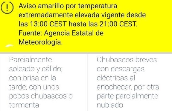 He consultado el tiempo en AEMET, como hago siempre antes de salir, se esperaba hoy temperatura elevada,35 Cº de máxima, pero voy preparado, con gorra, agua de sobras para estar bien hidratado y llevo todo lo básico para cualquier eventualidad que pueda surgir, además voy de tarde.