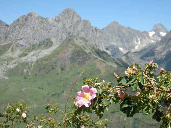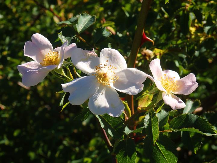 Mientras voy bajando me doy cuenta de que la senda está rodeada muchas de las veces por rosales silvestres que están ahora en plena floración.
