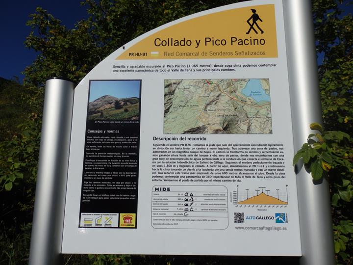 Es justo ahí donde se puede ver un cartel explicativo de la ruta a seguir, muy completo y que recomiendo os leais antes de iniciar la caminata que será en contínua y progresiva subida hasta llegar al pico.