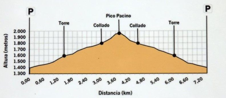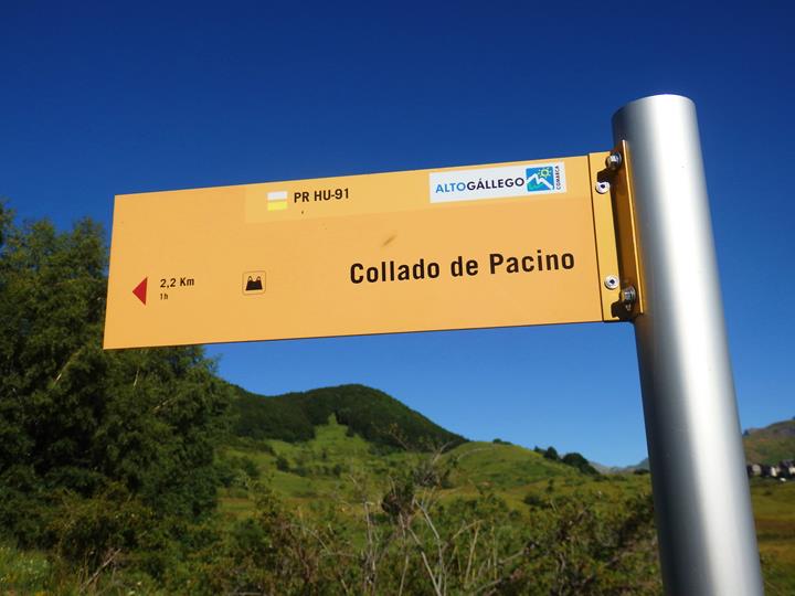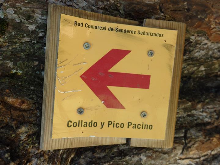 En la foto de debajo os pongo el cartel que nos indica la dirección al Collado de Pacino, una zona anterior a la cumbre que es por donde hay que ir.