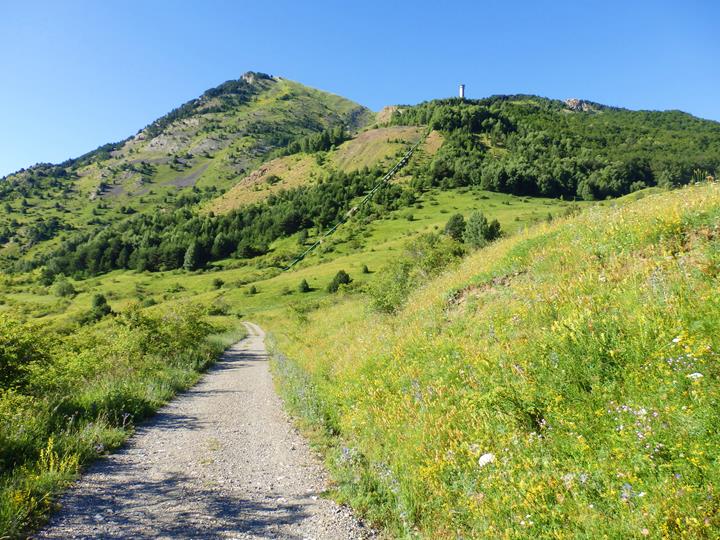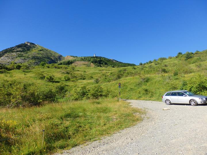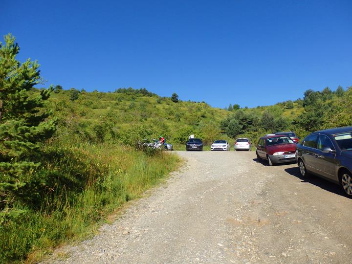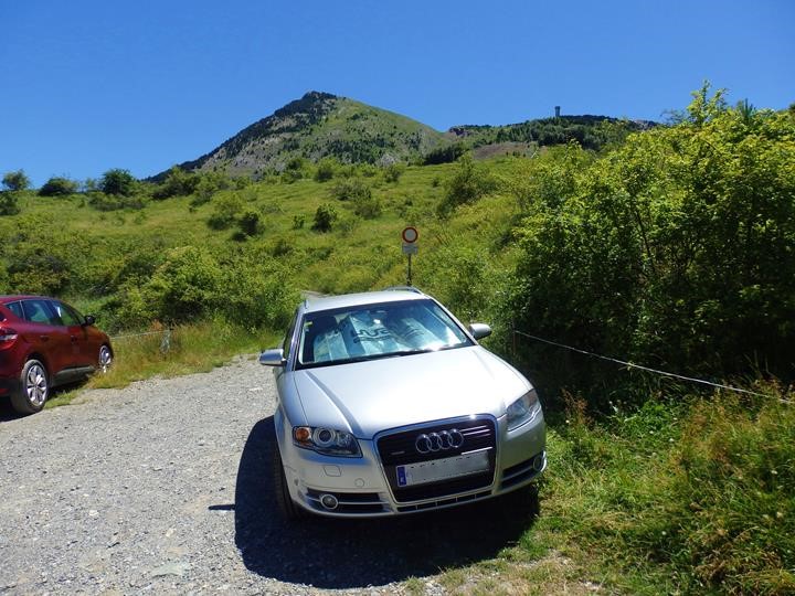 Mientra progreso hacia el pico me doy la vuelta. En la foto que os pongo debajo se ve perfectamente el camino que he seguido desde el collado, la torre de hormigón a la derecha del todo abajo, y el bosque de hayas.