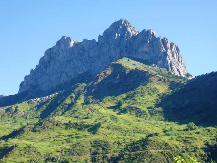 Hacia el NE se ve la imponente silueta del pico Palas, una mole de granito que puede apreciarse muy bien desde el Balneario de Panticosa.