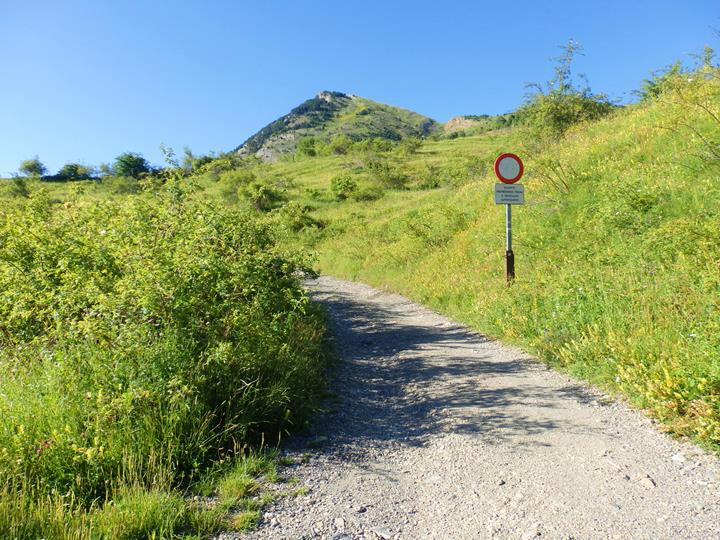 Justo donde aparece esta señal de prohibido circular para los vehículos no autorizados, debemos comenzar a caminar siguiendo siempre la pista.