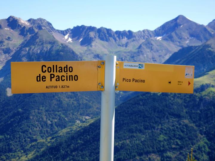 Al llegar a su altura, veo unos carteles indicativos de donde estoy. Es el Collado de Pacino, a 1.827 m de altitud. Sólo me queda llegar a la cumbre que se ve próxima.