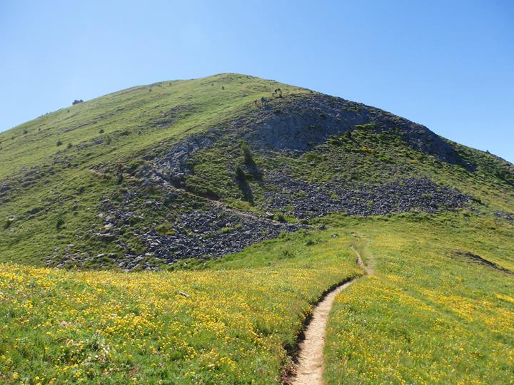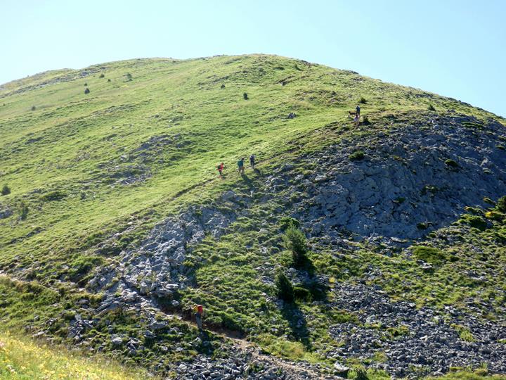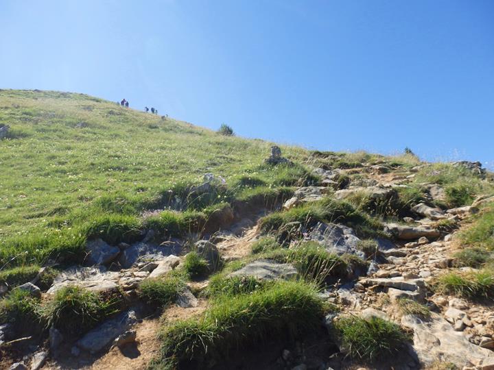 Aparentemente parece una loma suave y fácil de superar. Aunque con el zoom de la cámara saco a algunas personas subiendo y me doy cuenta de que habrá que subir unas cuantas pendientes en el último tramo, pero, ¿qué cumbre que se precie no las tiene?.