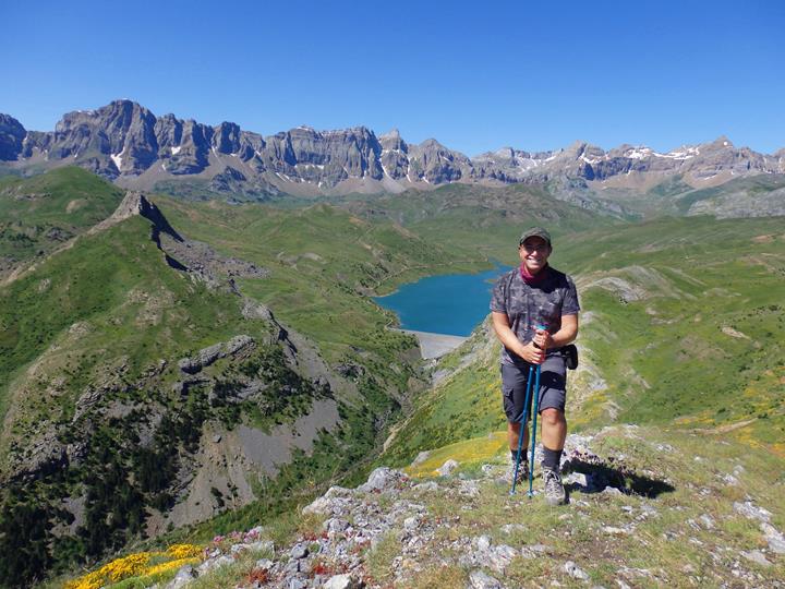 Ya que me he subido el trípode aprovecho para hacerme una foto con el pantano, Sallent y los picos del fondo.
