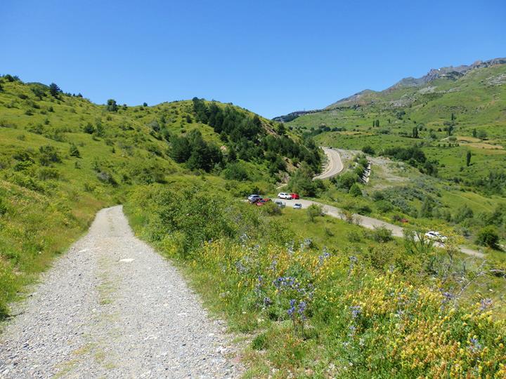Un poco después de salir de este pequeño bosque, otra vez el paisaje se abre y puedo ver la torre de descompresión allá abajo y comprobar que he ganado bastante altura en poco rato.