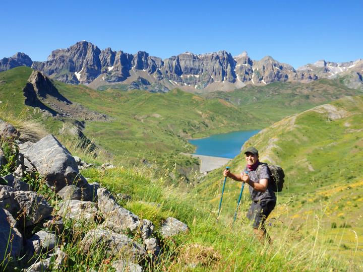 Es temprano, un poco más de las nueve de la mañana y el sol aunque todavía no muy alto ya despunta con fuerza. Se ven los picos de alrededor y el pantano de Lanuza allá abajo.