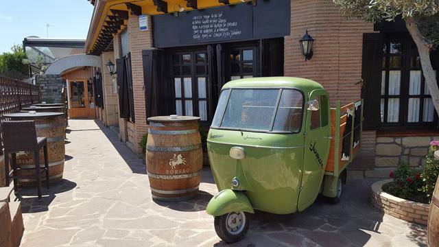 La excursión comienza en la zaragozana Plaza Toulouse, cruzamos las vías del tranvía y continuamos por Vía Ibérica hasta la Fuente de los Incrédulos donde nos desviamos tomando la orilla del canal Imperial de Aragón hasta llegar a otro desvío que nos conducirá hasta la Fuente de la Junquera. Allí hay un conocido restaurante merendero en el que podemos ver un motocarro, o isocarro como también se dice, marca Piaggio Ape C,que sirve de reclamo publicitario. Justo al lado, un caballo nos observa curioso en lo alto.