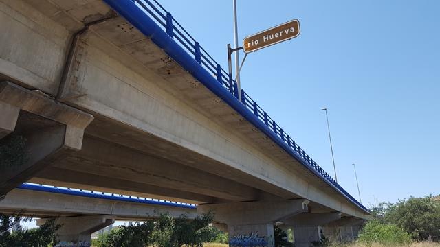 La pista va paralela al río Huerva durante un buen tramo. En un momento determinado se pasa por debajo del puente de la Z-40 o cuarto cinturón de Zaragoza.