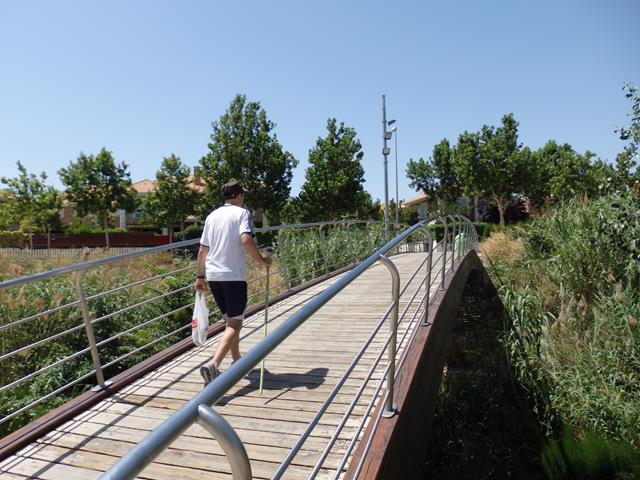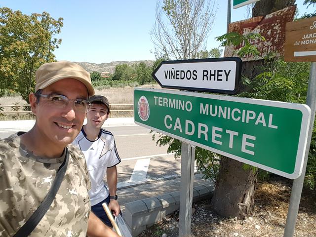 Tras unos 12,5 km de recorrido, llegamos a Cadrete. Entramos en la localidad y nos disponemos a cruzar el río Huerva por el puente. La temperatura es de unos «agradables» 40 grados centígrados. Menos mal que vamos bien hidratados.