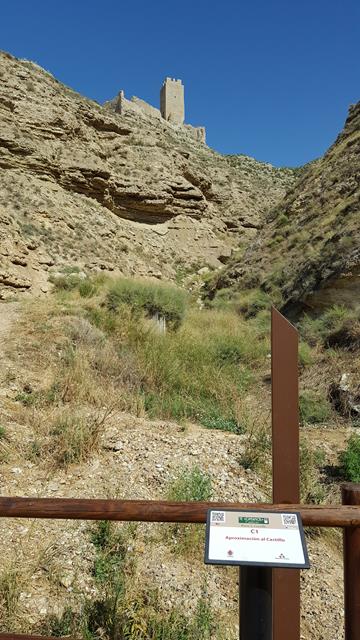 El panorama es reseco total. Un barranco natural hace de murallón para el castillo que está arriba a la izquierda, bien protegido de hipotéticos ataques enemigos.