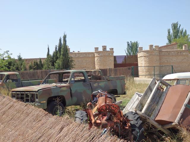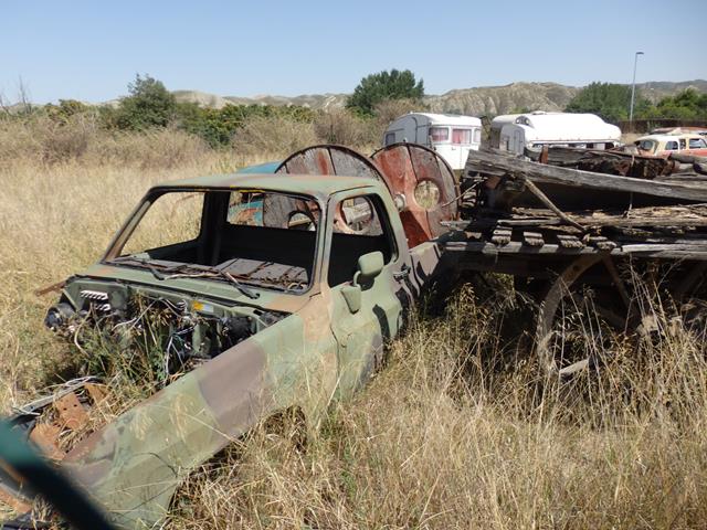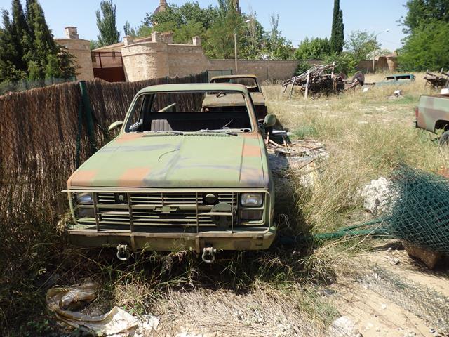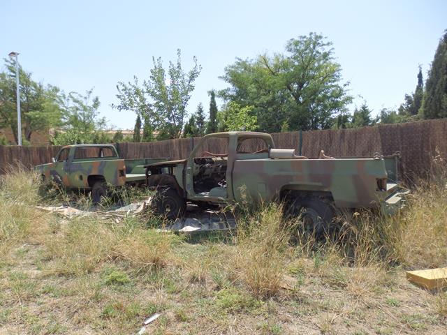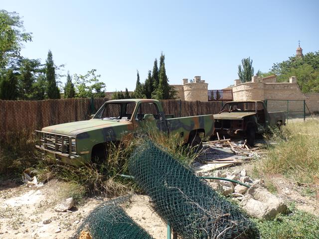 Otros vehículos que también están diseminados por el lugar son unos cuantos pick-ups americanos pintados de camuflaje, o con chaqueta militar, como se suele decir, imagino que pertenecerían a la base americana de Zaragoza y ahora están aquí, tal vez adquiridos por el dueño del resto de vehículos.