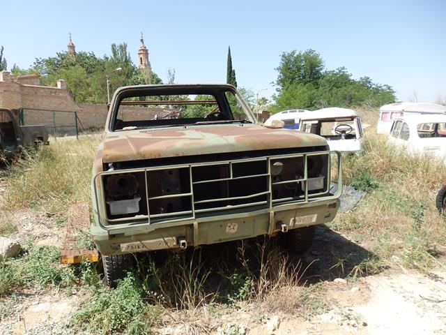 A un lado hay otro Chevrolet K5 Blazer, y ya van tres, pero a este le han desmantelado más piezas de la parte frontal. Puedo sacarlo por detrás también pero no distingo ningún logo.