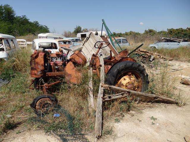 Este tractor se fabricó entre los años 1947-1957. Tenía una potencia de 40 CV y era de transmisión manual. Está hecho polvo. Parece que se haya caído de una montaña abajo. Y quizás sea así, dado su estado. Tal vez alguien lo quiera restaurar, pero le auguro mucho trabajo.