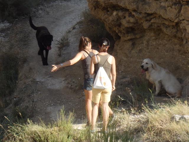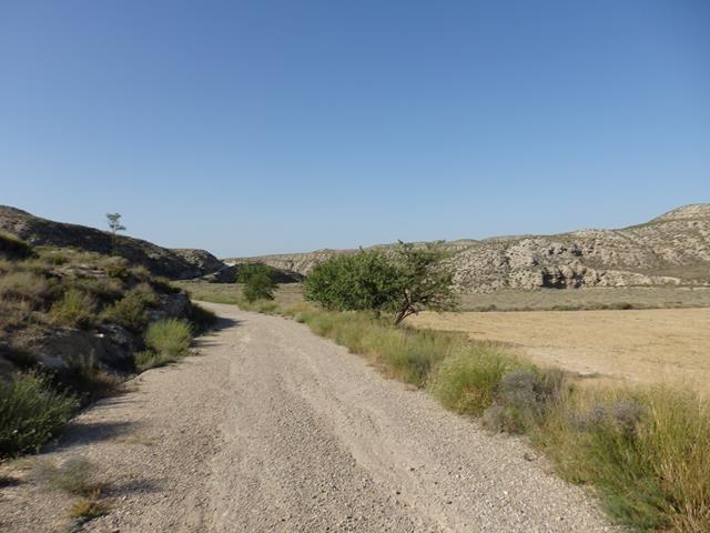Pronto volvemos a ver resecos cortados y barrancos imposibles en medio de la desolación de la estepa. Llevamos 22,5 km por ahora. Unos gritos nos sobresaltan. No sabemos que es. Parecen salir del fondo de un barranco que tenemos a la derecha, a lo lejos. Al final descubrimos con el zoom de la cámara que son dos chicas llamando a sus perros.