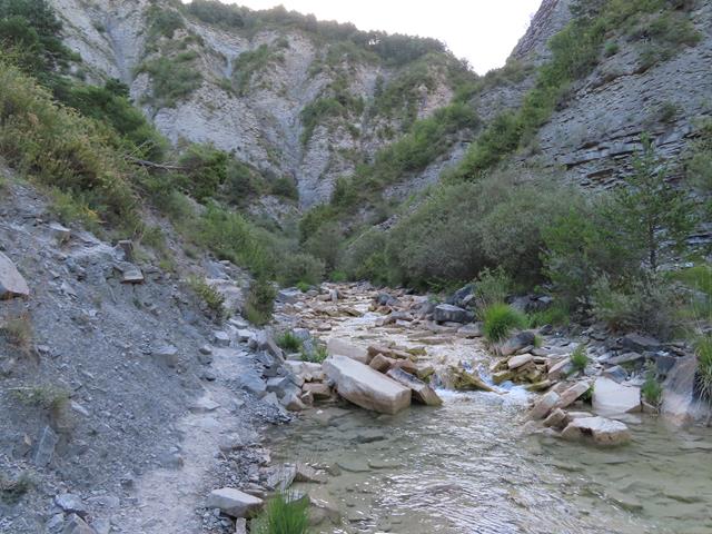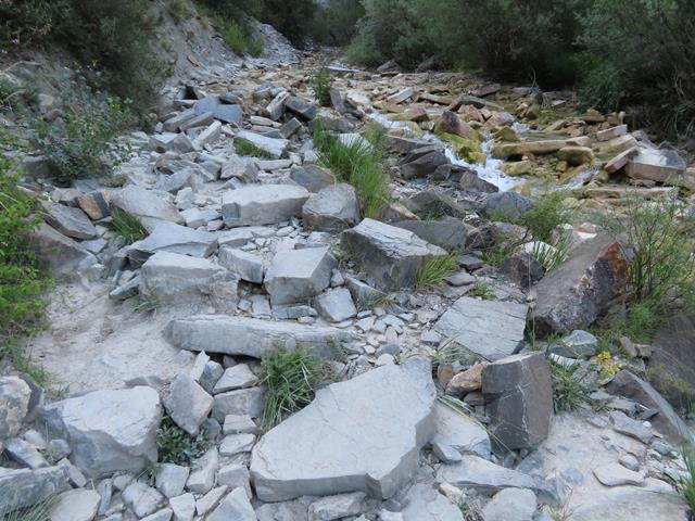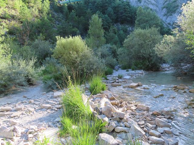 Se ve que hay una senda alternativa un poco más arriba, supongo que será para cuando el cauce viene con más caudal e impida ir pegado al río. Por momentos el camino se desdibuja. Hay que guiarse por la intuición. Cuanto más pegado al agua se vaya, mejor.
