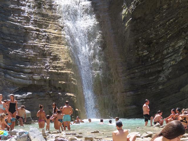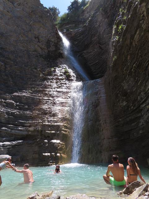 La cascada está muy bonita, iluminada por la luz del sol, y la poza adquiere unos tonos verdosos preciosos…todo genial, salvo porque el exceso de gente bañándose estropea totalmente la grandiosidad del lugar. Ya sabéis, si no queréis aglomeraciones, no acudáis a esas horas. ¡Hasta pronto!
