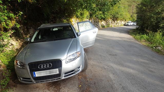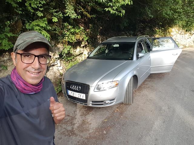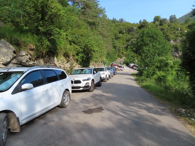 Ese aparcamiento de la Ereta de Biés es muy pequeño, casi minúsculo, así que lo normal es que la fila de coches aparquen en un lateral de la propia carretera conforme van llegando, que es lo que hago yo, eso sí, aprovechando una zona de sombra que me da la vegetación, así el coche estará menos castigado por el sol, a además, si podéis, dejad un pelín la ventanilla bajada, lo justo para que circule el aire dentro del vehículo y escape el calor.