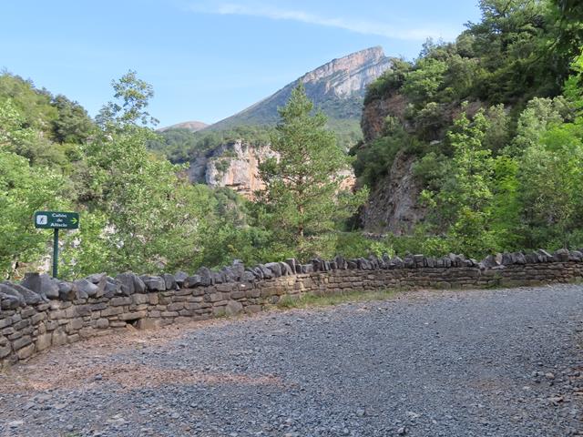 Tras pasar el puente de Espluquetas, y después de un rato de ascender por la senda, ésta se abre de nuevo al paisaje y nos deja ver con detalle los picos que cierran por arriba esta parte del cañón como el Tozal de la Fueva.