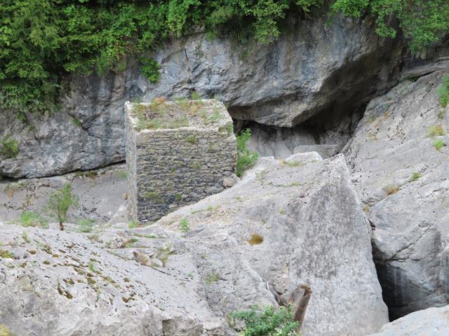 Sigo escuchando en todo momento el agua del río Bellós que discurre más abajo a mi izquierda. En un momento determinado veo una especie de pilastra, a un lado del cauce. Debió ser parte de algún puente muy antiguo que se llevaría por delante alguna crecida del río y que ya no se volvió a reconstruir.