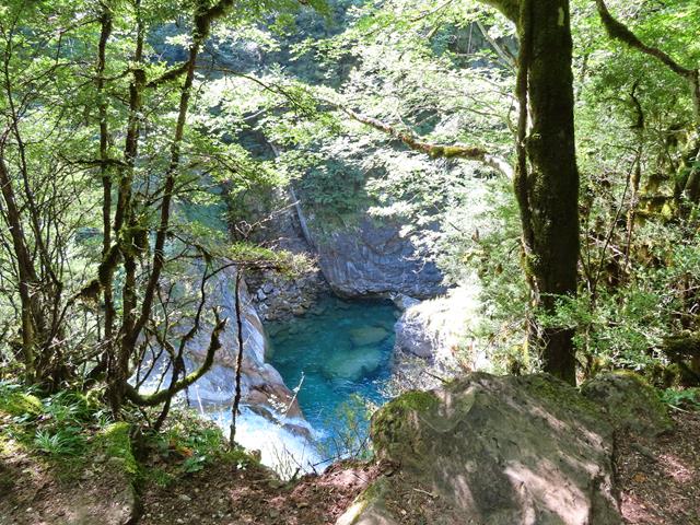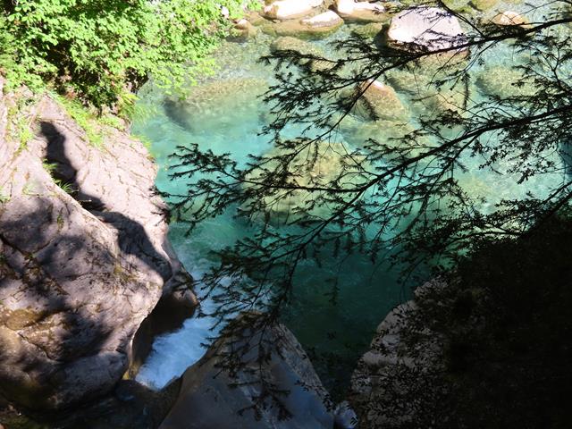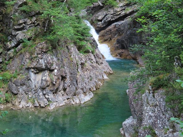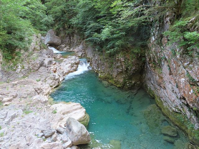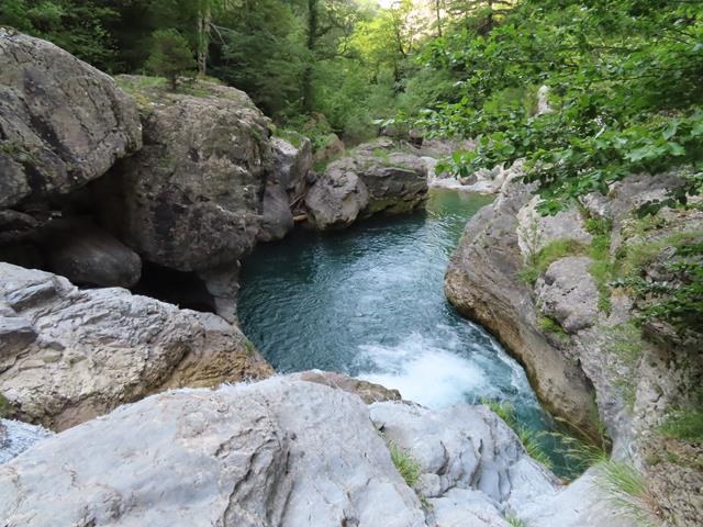 Sigo subiendo. De vez en cuando observo pequeñas cascadas y pozas de increíble agua azulada. La senda va un poco expuesta en algunos tramos, hay que tener precaución y asomarse con mucho cuidado .