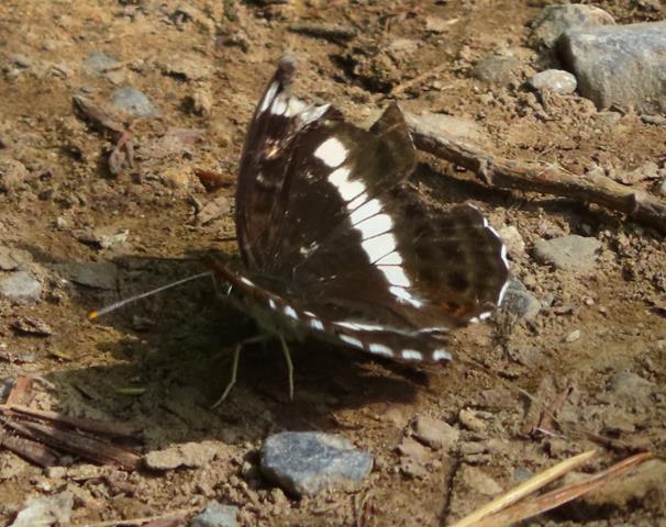 Es aquí donde me encuentro con un par de mariposas de la clase Ninfa boscana o Limenitis camilla, propia de estas latitudes de bosques caducifolios. Una de ellas está bastante maltrecha, parece que ha sufrido una rotura de parte de sus alas.