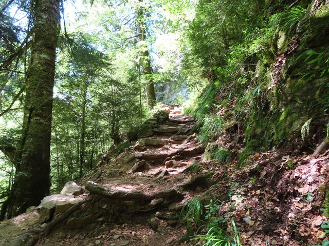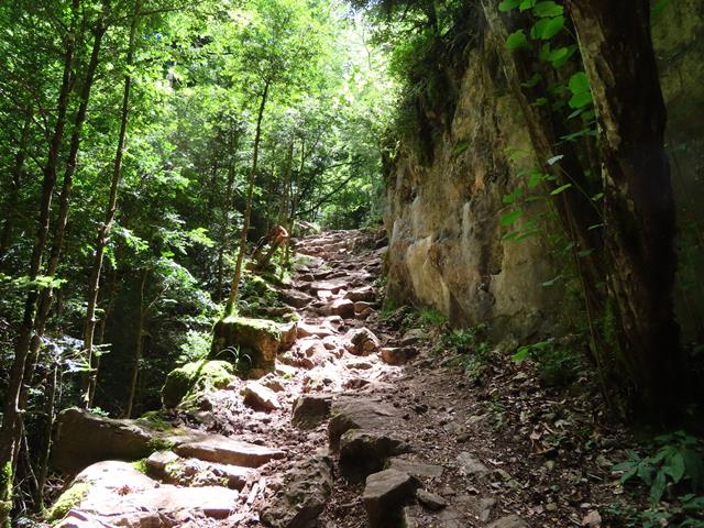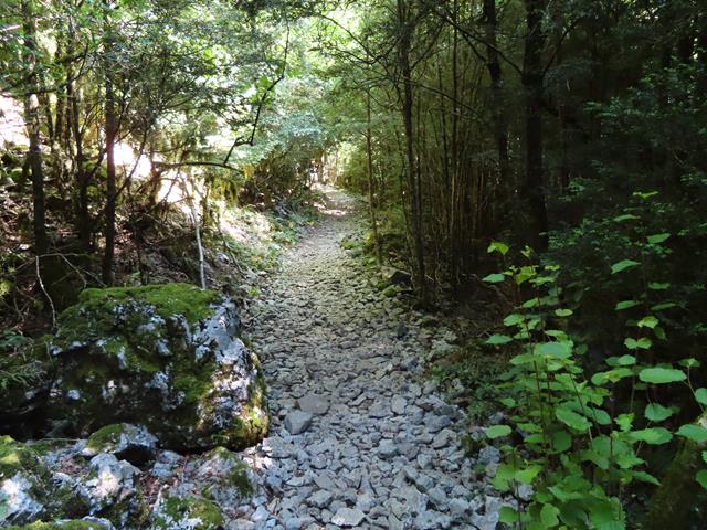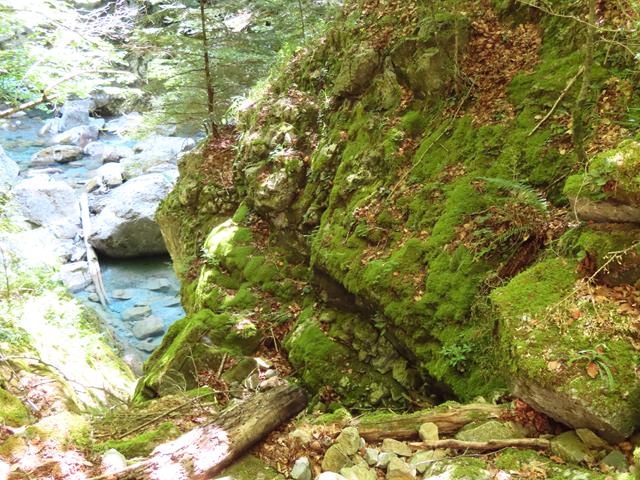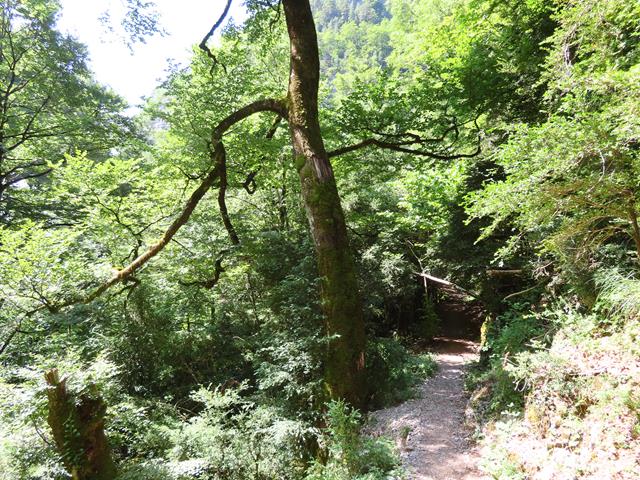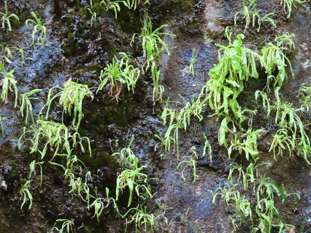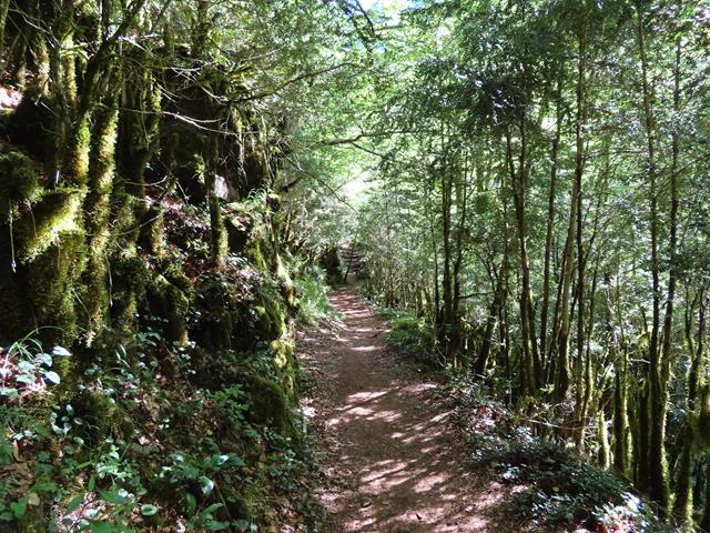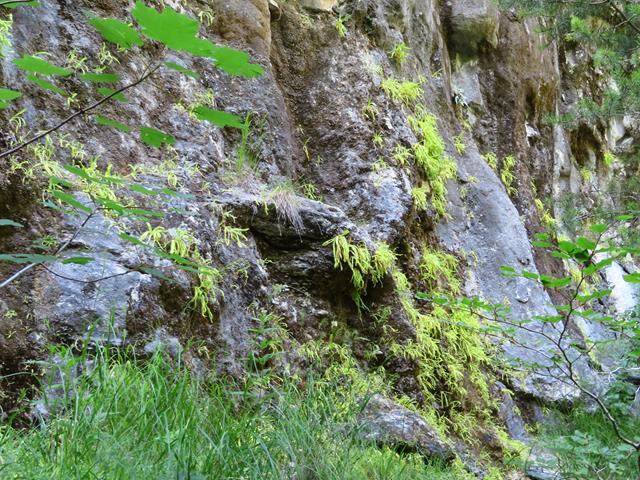 Hay zonas en la que la vegetación es tan densa que parece que entras en un oscuro túnel verde. Se pueden observar algunos helechos arqueados sobre las rocas, como el Asplenium viridis, cuyos tallos suelen alcanzar los 20 cm.