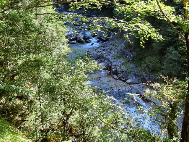 Entre la maleza, a ratos, se puede volver a ver el curso del río y los pequeños saltos de agua entre las rocas.