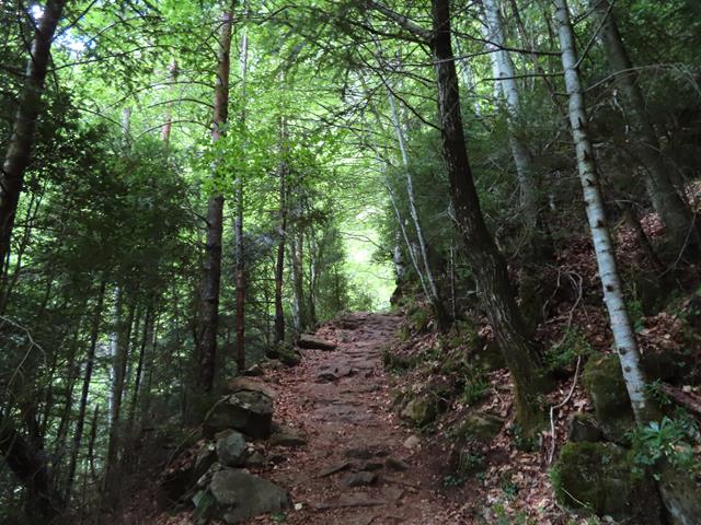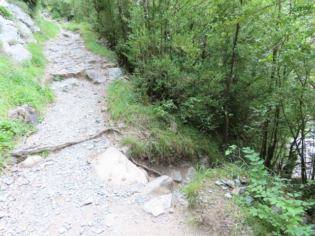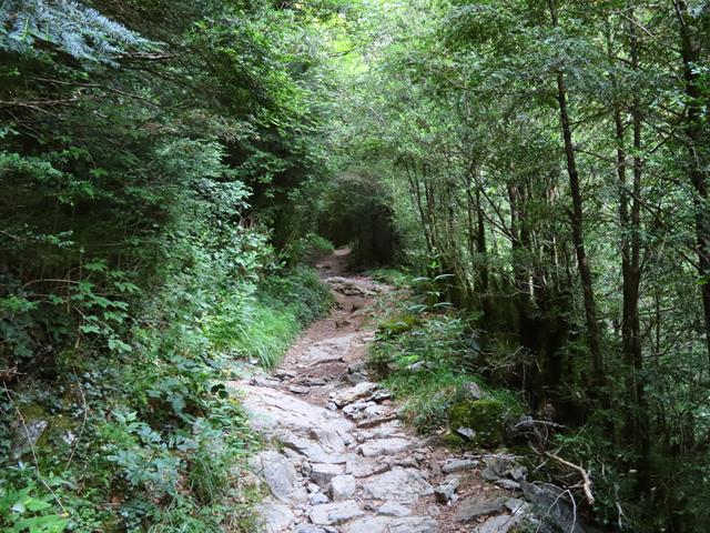 Aunque la pendiente no es muy pronunciada de momento, el firme a veces se vuelve algo más incómodo por la presencia de grandes piedras por eso mejor si lleváis bastones, son muy útiles en estos casos, evitaréis un mal paso.