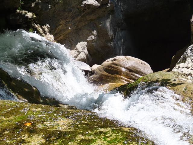 Entre los árboles sigo observando algunas cascadas, algunas se deslizan un buen trecho por la roca. El rugido del río Bellós al precipitarse entre ellas lo envuelve todo.