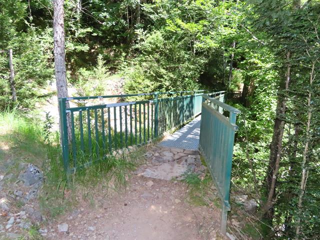 A partir de aquí seguiré por la pista forestal que discurre a lo lo largo del río Bellós y en el puente de Sangons cambiaré de vertiente – a la margen orográfica derecha-. Después iré subiendo por la senda hasta pasar el desvío hacia el pueblo deshabitado de Sercué que queda a mi izquierda.