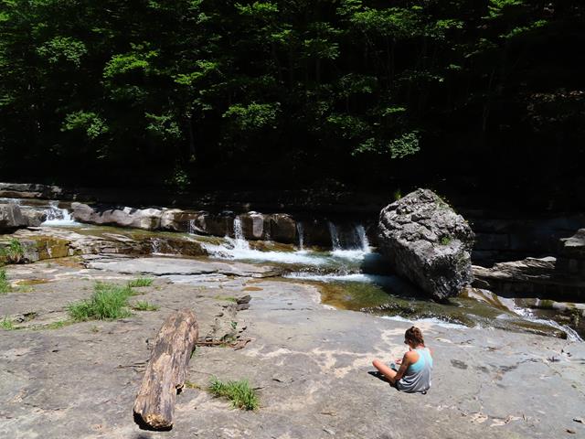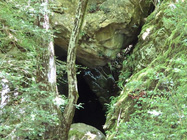 Sigo viendo entre los árboles el río que forma pequeñas cascadas así como misteriosas cuevas en la roca por las que penetra el agua.
