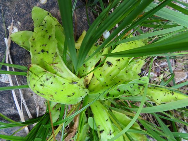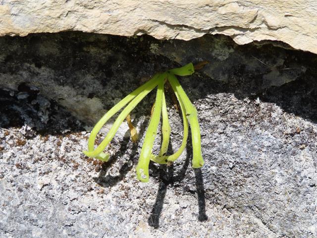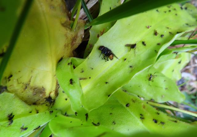 Ahora llego a la zona donde vi antes las grasillas. La roca está llena. Puedo acercarme a alguna de ellas y contemplar la matanza. Moscas, mosquitos, pequeños insectos…la planta se va a dar un festín con ellos.