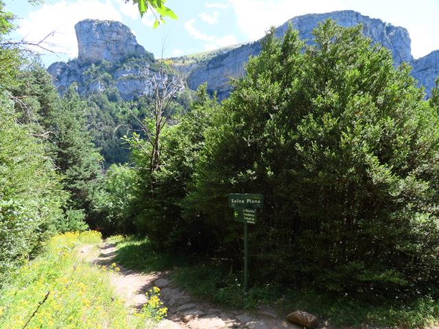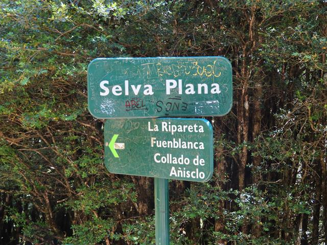 Cuando he descansado algo y contemplado este lugar, continúo hacia la Selva Plana. Justo al lado del sendero que hay que coger están los letreros indicativos, no se puede uno desorientar.