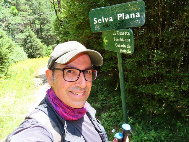 Y efectivamente así es. Estoy en la Selva Plana, llamada así porque es una selva llena de vegetación y está en terreno más o menos plano. De todas formas hay un cartel que lo indica. Curiosamente estoy 13 m por encima de mi destino final, la Ripareta.