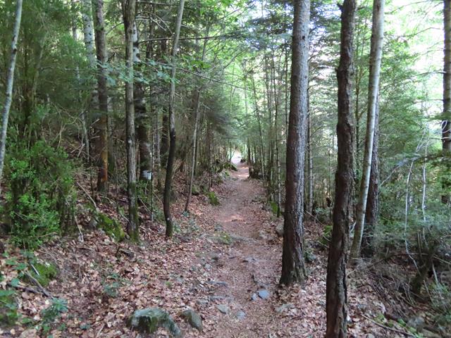 Al final la senda abandona la fuerte pendiente y parece que comienza a llanear por fin. Puede ser un aviso de que estoy llegando a la Selva Plana.