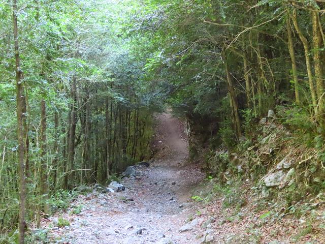En algún tramo, las piedras del camino disminuyen en tamaño, transformándose en grava gruesa, lo que hace algo más llevadera la subida.