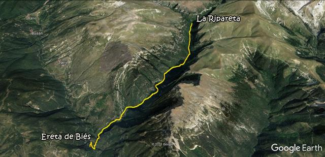 Seguiré avanzando en altura, y mucho más adelante, el sendero llegará a la Ripareta, en la confluencia del Barranco de la Pardina con el río Bellós, y es aquí donde el camino se pone a la altura del río. Aquí se da la vuelta y se regresa por el mismo recorrido. De todas formas aún se puede seguir más allá. Este cañón tiene 21 km de largo hasta su final, un trabajo concienzudo de excavación del río Bellós en las calizas del período Cretácico. Comenzamos.