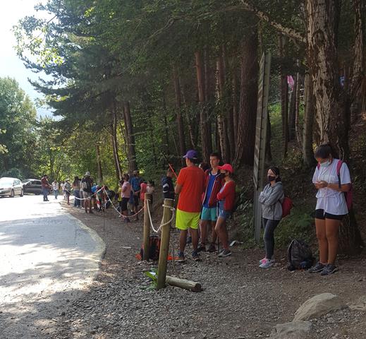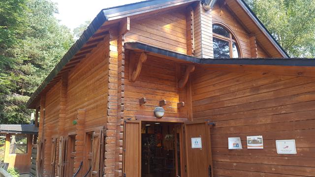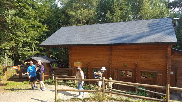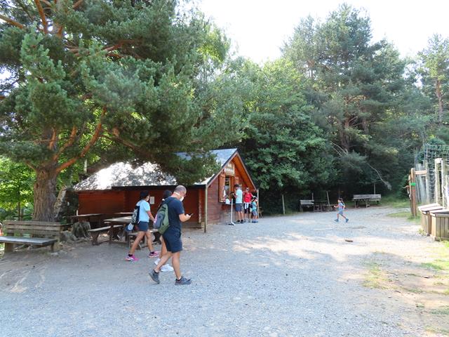 Como a mitad de recorrido, llegas a una zona de descanso donde puedes comprarte algún bocata o comer lo que te hayas traído -dejan pasar comida- en unas mesas de madera que hay en una agradable zona arbolada.