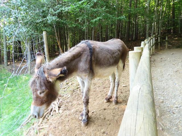 Mientras esperamos, un pacífico burro se nos acerca. Es muy manso, y como se deja, le hago alguna caricia en la cabeza. Está claro que le agrada el contacto con los humanos.