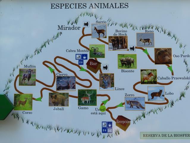 Una vez entramos, me encuentro con unos carteles indicativos de los ecosistemas que podré contemplar, tanto de plantas como de especies animales que habitan en el parque, os los pongo debajo para que lo veáis.