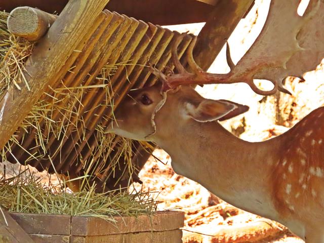 Lo que veo ahora son varios gamos alimentándose de un comedero preparado de propio para ellos.Considerado un herbívoro de amplio espectro, su dieta está fundamentalmente integrada por hierbas y gramíneas, las que suelen completarse con hojas, brotes y frutos otoñales.