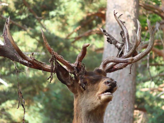 Ahora le toca el turno al siempre reconocible ciervo. El ciervo común es un ciervo de gran tamaño (sólo superado por el alce y el uapití dentro del conjunto de los cérvidos vivos), con un tamaño ordinario de 160 a 250 cm de longitud y un peso en los machos de hasta 200 kg.